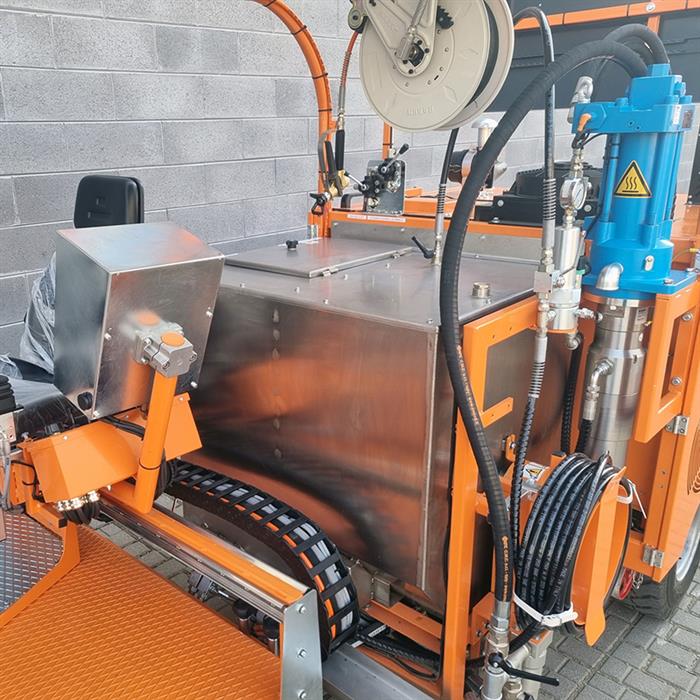 Itseliikkuva kylmämuovinen tiemerkintäkone. Erittäin tuottava kylmämuovinen tiemerkintäkone. Laitteistosta riippuen voidaan levittää tasaisia viivoja, agglomeraatteja tai uurrettuja merkintöjä.