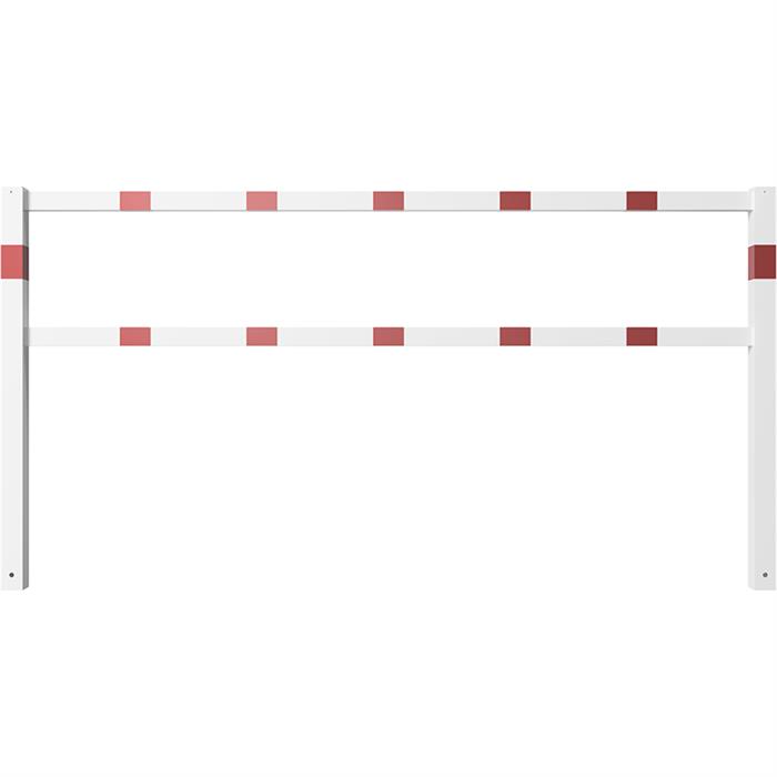 Bariery stałe, spawane, z szyną górną i kolankową, ocynkowane ogniowo i powlekane na biało z czerwonymi pasami światła odblaskowego, szerokość całkowita: 2500 mm