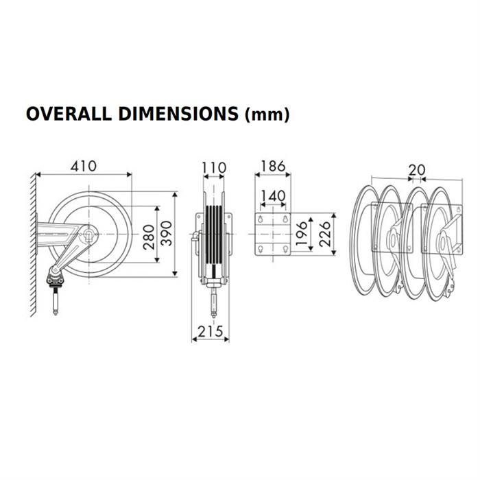 Slangvinda i rostfritt stål, 400 bar